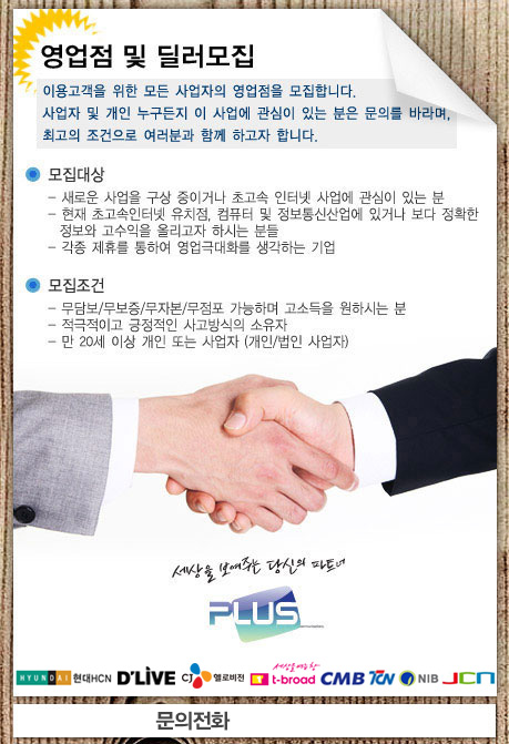 | 고객의 서비스 이용에 따른 전화상담 및 가입접수 등의 고객상담 | 유선방송인터넷 가입센타 |